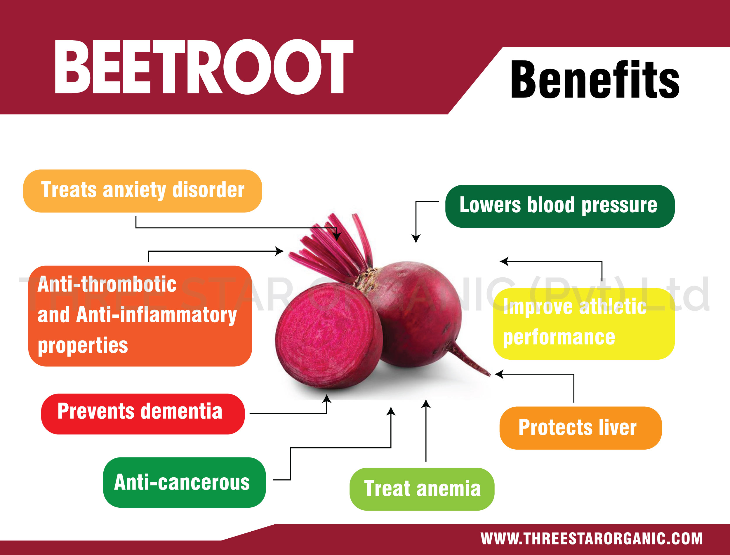 Beetroot is naturally rich in compounds called nitrates, making them heart-friendly. Nitrates help to improve blood flow by relaxing the blood vessels, reducing arterial stiffness and promoting dilation which potentially lowers blood pressure. A reduction in blood pressure is beneficial for the avoidance of heart disease and stroke. Studies suggest that nitrate-rich foods, like beetroot, may also help in heart attack survival.