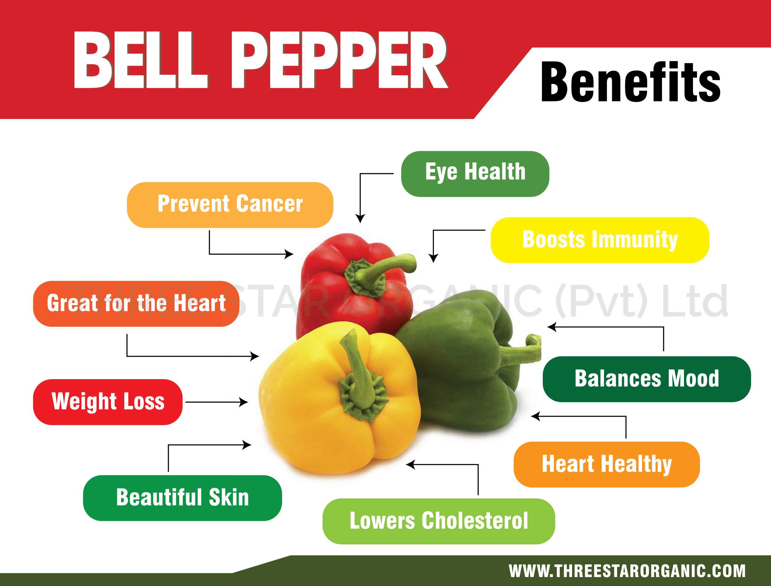 Bell peppers, Capsicum annuum are a cultivar group of annual or perennial plants in the family Solanaceae grown for their edible fruits. Bell pepper plants are short bushes with woody stems that grow brightly colored fruits. The alternating leaves are elliptical, smooth edged, and come to a distinct point. The plant produces white or purple bell-shaped flowers which are 2.5 cm (1 in) in diameter. Red, yellow, purple, or brown fruit are produced each season about 3-6 weeks after flowering. Pepper plants can grow 1 m (3.3 ft) tall and are usually grown as annuals in temperate regions for only one growing season. Bell pepper may be referred to as red pepper, yellow pepper or green pepper and is believed to have originated in Central and South America.