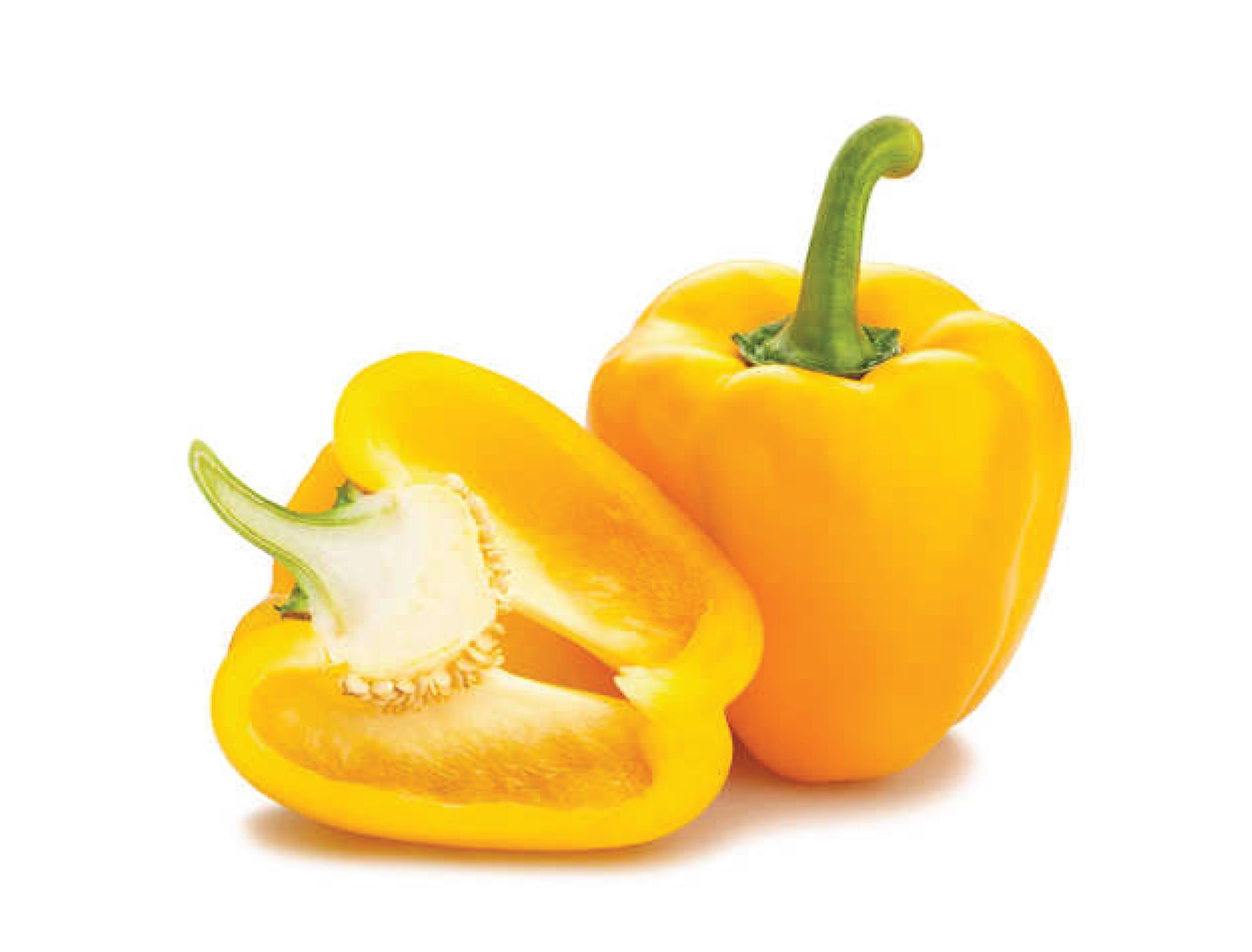 Bell peppers, Capsicum annuum are a cultivar group of annual or perennial plants in the family Solanaceae grown for their edible fruits. Bell pepper plants are short bushes with woody stems that grow brightly colored fruits. The alternating leaves are elliptical, smooth edged, and come to a distinct point. The plant produces white or purple bell-shaped flowers which are 2.5 cm (1 in) in diameter. Red, yellow, purple, or brown fruit are produced each season about 3-6 weeks after flowering. Pepper plants can grow 1 m (3.3 ft) tall and are usually grown as annuals in temperate regions for only one growing season. Bell pepper may be referred to as red pepper, yellow pepper or green pepper and is believed to have originated in Central and South America.
